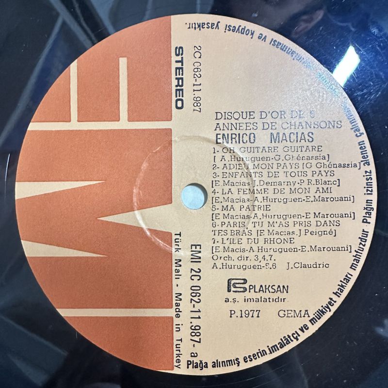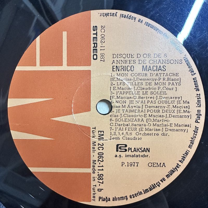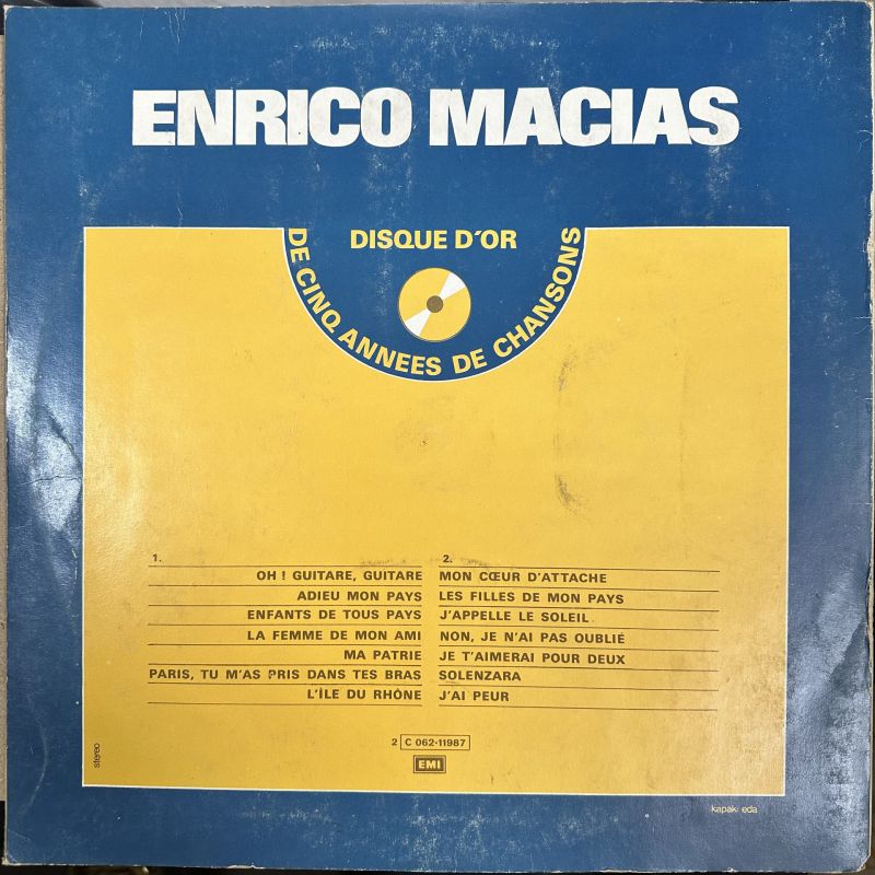 ENRICO MACIAS - DISQUE D'OR DE CINQ ANNEES DE CHANSONS PLAK